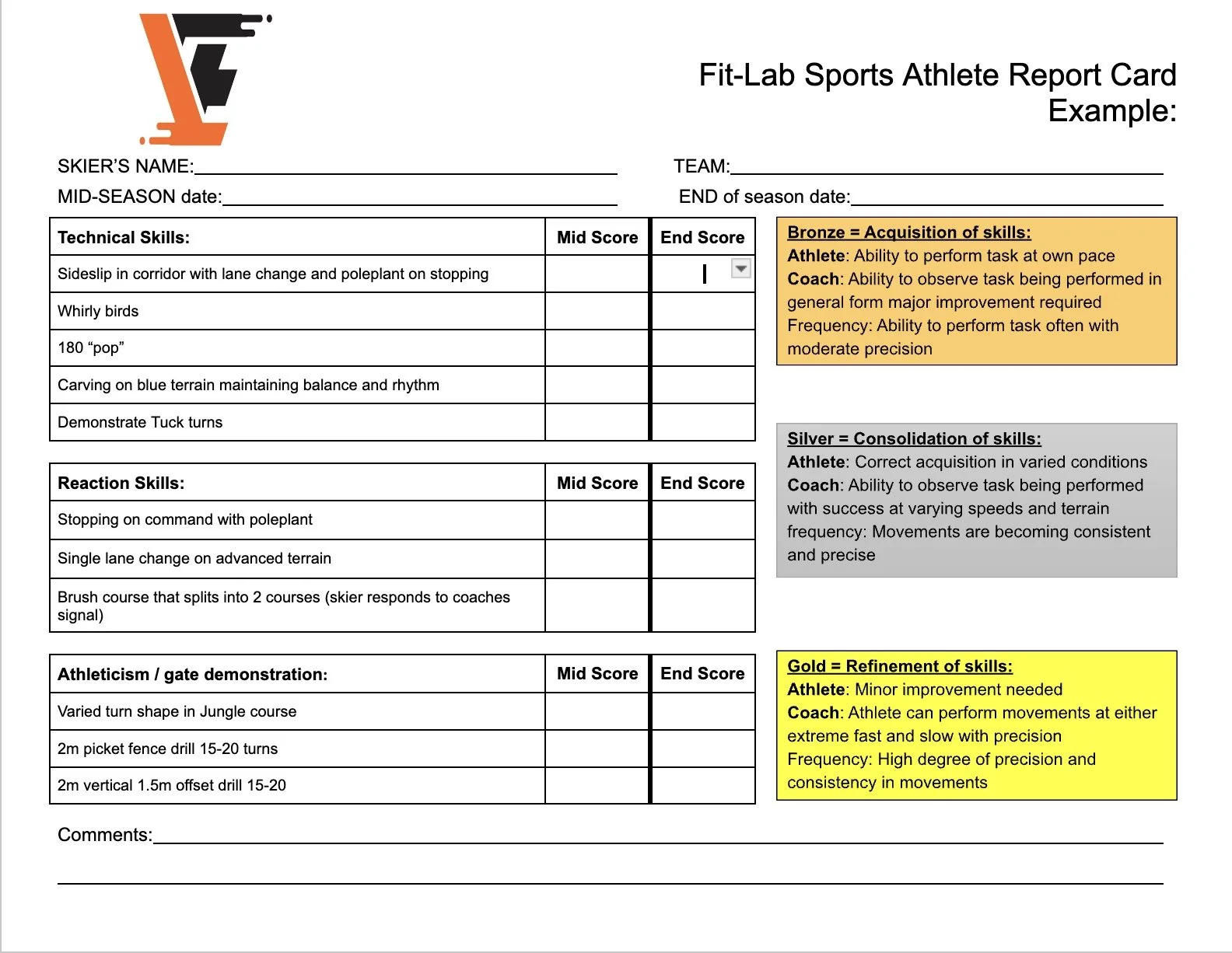 To address these challenges, I propose a more holistic scoring sheet that evaluates not only the specific skills required on the snow but also critical elements that define athleticism: thinking skills and reaction skills. By breaking down the assessment into three key segments, we can create a more relatable and comprehensive scoring format: